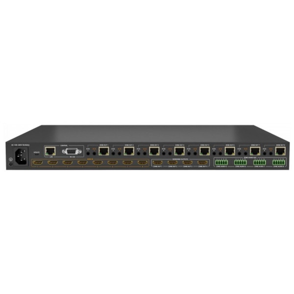 Equipped with 4 balanced analogue audio breakouts that follow the last 4 HDBaseT outputs, this provides the necessary confidence to connect to long run audio cabling without fear of audio interference.