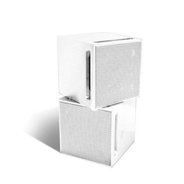 The JAM-43CUBE Cube Speaker is the ultimate indoor speaker providing a high quality performance despite its size. Designed specifically for discrete bookshelf placement with excellent bass response, rear passive radiators load off the rear of the bookshelf to extend the bass response. Side vents allow this cube to be placed against the rear wall, allowing bass to emanate into the room. Available in gloss white, gloss black and custom colour finishes.