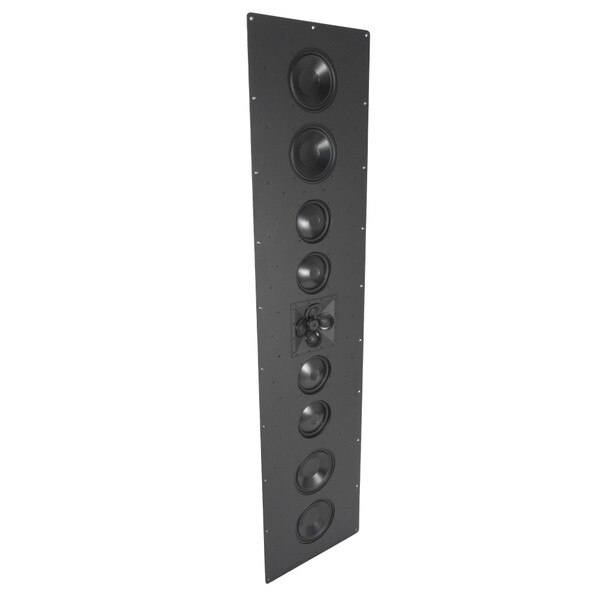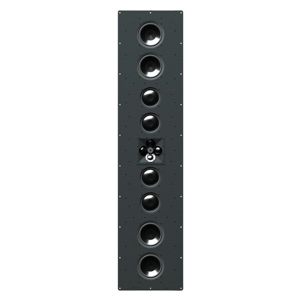 The BE812-MKII in-wall reference loudspeaker features high-output driver components, set into a solid aluminium baffle, coupled with James' quad tweeter array, incorporating four 1" (25mm) beryllium dome tweeters in a 22.5 degree offset array for wide dispersion, high-power handling and low distortion promises to deliver audiophile-quality where it counts. Combined with four high output 8" (203mm) aluminium cone woofers, (4) 6.5" (165mm) neodymium mid-drivers, the 812BE has an impressive 102dB sensitivity with bass down to below 40Hz. A multi-element network blends the highs and lows into a smooth and ultra-wide response.
