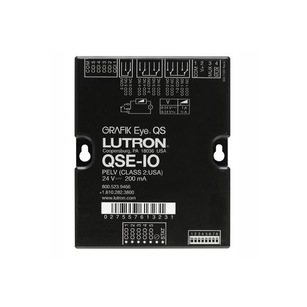 The HomeWorks QSE-IO contact closure interface from Lutron provides integration with third party equipment requiring contact closure input and output including occupancy and vacancy sensors, motorised projection screens, skylights and window shades.