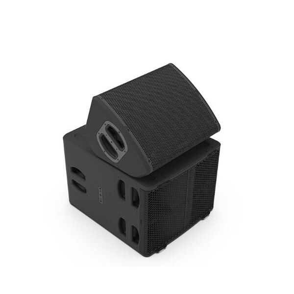 Three large comfortable handles on each side ensure easy use of the NEX-L in any situation, particularly when used with its dedicated wheel board and cover. The back plate holds two Speakon® connectors that can be used for both multiple L15 or L18 daisy chaining or to link a NEX-P+ speaker. The strong front grill uses a very large hexa shaped design, so as to not restrict the air flow from the two larges tuned chambers.