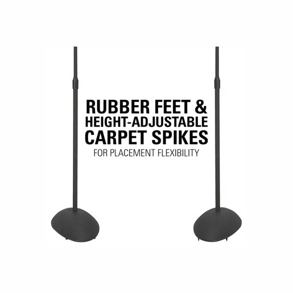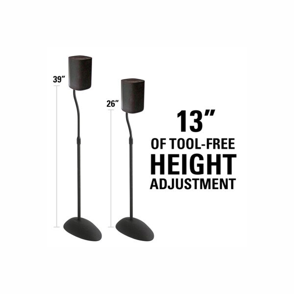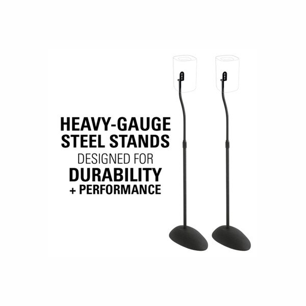 The Sanus HTB3-B1 adjustable stands for satellite speakers are designed for durability, stability and performance with heavy gauge steel pillars and a solid steel base.