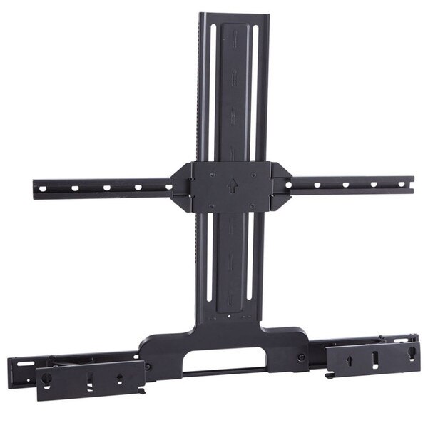 This mount provides 12cm depth adjustment to ensure mics and Atmos drivers are clear and working properly and up to 38cm height adjust ensures a snug fit under your mounted TV for a clean and sleek look. Its weight capacity is 6.35kg.