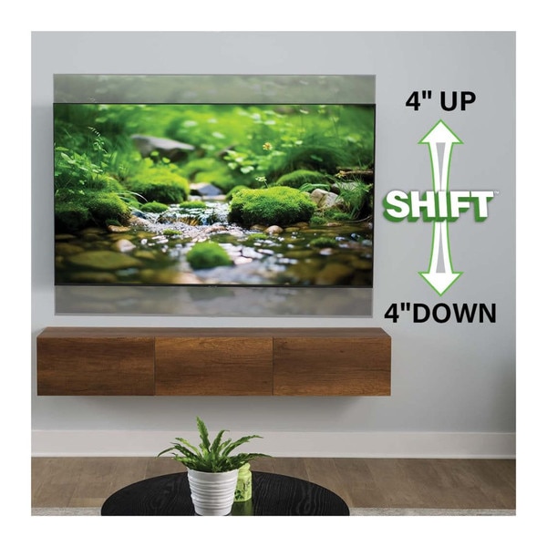 With the 4D™ + SHIFT height adjustment feature, you can enjoy up to 20cm of up or down movement for precision TV positioning on the wall, making this mount an ideal solution for when mounting a TV above a fireplace mantle, above a TV console or even when you have to position around a pre existing outlet on the wall. This shift feature also allows you to raise your TV at a later time to provide enough space to add in a soundbar or to accommodate seasonal decorations that may interfere with the screen of the TV.